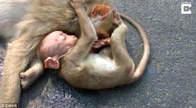 Μάρτυρες ενός σπαραξικάρδιου περιστατικού έγινες οι κάτοικοι χωριού στην Ινδία, που παρακολούθησαν ένα μικρό μαϊμουδάκι να θρηνεί το θάνατο της μητέρας του. Η ενήλικη μαϊμού είχε μόλις πέσει νεκρή, αφού παρασύρθηκε από διερχόμενο αυτοκίνητο. Το μικρό της, που είδε όλη τη σκηνή, έτρεξε στο πλάι της και προσπαθούσε να την "αναστήσει" αγκαλιάζοντάς την και κλαίγοντας γοερά.