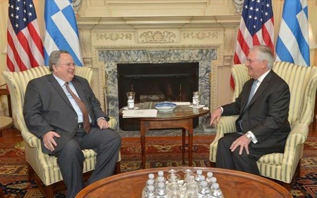 Ο ρόλος της Ελλάδας στα ζητήματα σταθερότητας και ασφάλειας στην περιοχή και στις γεωστρατηγικές μετακινήσεις που γίνονται, ήταν το βασικό αντικείμενο της ημίωρης συνομιλίας που είχαν σήμερα στο Στέιτ Ντιπάρτμεντ ο Έλληνας υπουργός Εξωτερικών Νίκος Κοτζιάς και ο Αμερικανός ομόλογός του, Ρεξ Τίλερσον.