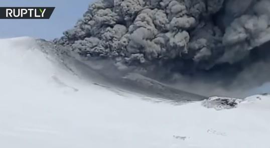 Στα πλάνα που εξασφάλισε το ειδησεογραφικό πρακτορείο Russia Today δείχνουν την τέφρα του ηφαιστείου, ύψους 2.156 μέτρων, να εκτοξεύεται σε ύψος 7.000 μέτρων.