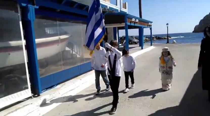 Τίποτα δε σταμάτησε τους τέσσερις μαθητές του δημοτικού σχολείου και του νηπιαγωγείου του Απόλλωνα Νάξου για να τιμήσουν και να γιορτάσουν την εθνική επέτειο της 25ης Μαρτίου στο χωριό τους.