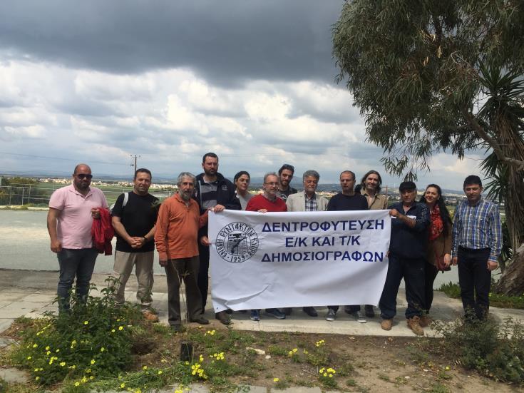 Στη δεντροφύτευση συμμετείχαν τα Διοικητικά Συμβούλια της Ενωσης Συντακτών Κύπρου και της Ένωσης Τουρκοκυπρίων Δημοσιογράφων