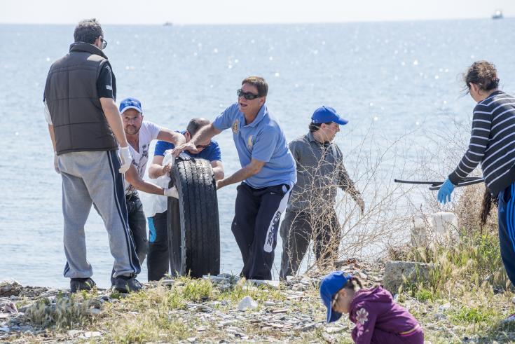 Άδειες μπουκάλες και τενεκεδάκια αναψυκτικών, σακούλια, μπαταρίες και πολλά άλλα είδη ανακυκλώσιμων και μη σκουπιδιών, ακόμη και ελαστικά αυτοκινήτου, απομακρύνθηκαν από την παραλία του Καρνάγιου.