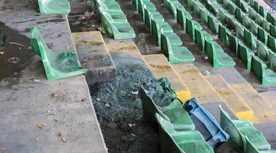 Όπως ανέφερε στα ΜΜΕ, από τη δυτική κερκίδα καταστράφηκαν 120 περίπου καθίσματα και πέντε αποχωρητήρια, τα οποία υπέστησαν ζημιές, όταν οπαδοί έθεσαν φωτιά σε πλαστικά καθίσματα που τοποθέτησαν στους νεροχύτες. Επίσης, πρόσθεσε, έσπασαν τζάμια και φωτιστικά.