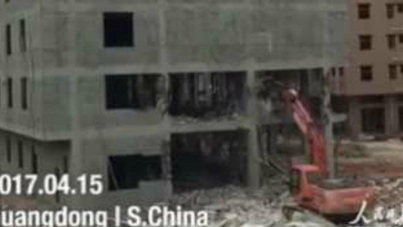 Σε εργοτάξιο στο Foshan, επαρχία Guangdong της νοτιοανατολικής Κίνας στις 15 Απριλίου, ένας εκσκαφέας δούλευε για την κατεδάφιση, την ώρα που 7οροφο κτίριο κατέρρευσε πάνω του! Ευτυχώς ο οδηγός είναι καλά και δεν τραυματίστηκε.