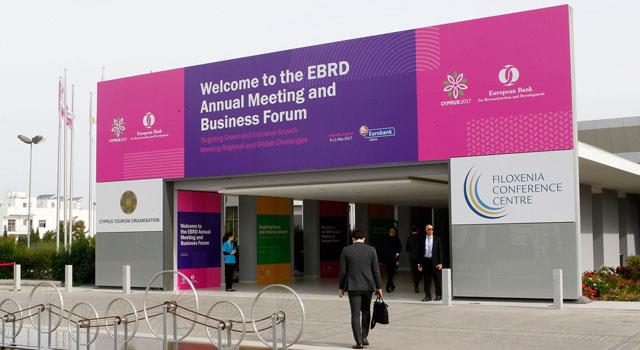 Κρατικούς αξιωματούχους, επενδυτές, επιχειρηματίες, επαγγελματίες και διεθνή μέσα ενημέρωσης από 65 διαφορετικά κράτη φιλοξενούνται από την Τρίτη (9 Μαΐου) στην Κύπρο η οποία βρίσκεται στο επίκεντρο του ενδιαφέροντος καθώς φιλοξενεί τις εργασίες της 26ης Ετήσιας Γενικής Συνέλευσης και του Επιχειρηματικού Φόρουμ της Ευρωπαϊκής Τράπεζας Ανασυγκρότησης και Ανάπτυξης (EBRD). Η επίσημη έναρξη των εργασιών πραγματοποιείται σήμερα Τετάρτη (10 Μαΐου) στο Συνεδριακό Κέντρο Φιλοξένια όπου ο Πρόεδρος της Δημοκρατίας Νίκος Αναστασιάδης, ο υπουργός Οικονομικών του Λουξεμβούργου Pierre Gramenga και ο Πρόεδρος της EBRD Suma Chakrabarti θα εκφωνήσουν τις ομιλίες τους.