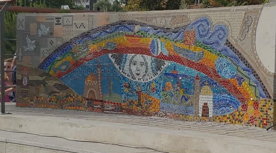 Το ψηφιδωτό έχει τοποθετηθεί στη συμβολή του γραμμικού πάρκου Γαρύλλη με την οδό Φεϊζί Πασά.