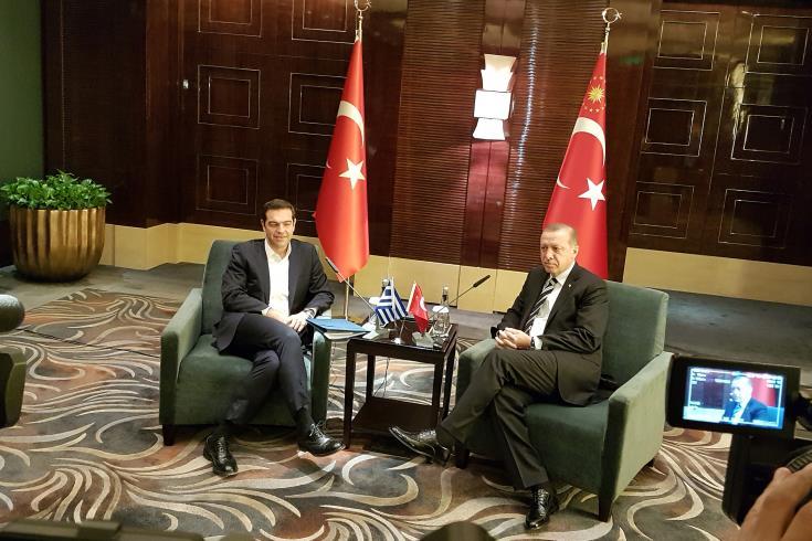 Είναι απαραίτητο να τερματιστεί η ένταση ανάμεσα στην Ελλάδα και την Τουρκία και να αποκλιμακωθούν οι προκλήσεις της Άγκυρας στο Αιγαίο και τη Μεσόγειο, είπε ο Έλληνας πρωθυπουργός Αλέξης Τσίπρας στον πρόεδρο της Τουρκίας Ρετζέπ Ταγίπ Ερντογάν κι έθεσε τη θετική ατζέντα των ελληνοτουρκικών σχέσεων, δίνοντας έμφαση στη διμερή συνεργασία στην οικονομία και άλλους τομείς, με την οποία συμφώνησε και ο Τούρκος πρόεδρος, σύμφωνα με κυβερνητικές πηγές.