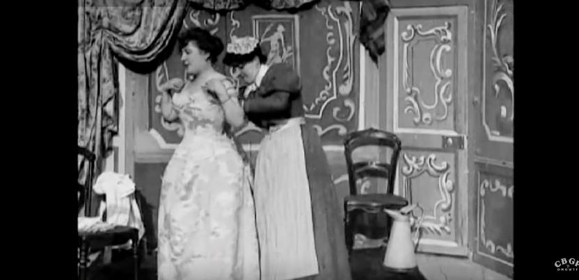 Η ταινία με τίτλο «Μετά τον Χορό» (Après le bal) κυκλοφόρησε το 1897. Σκηνοθέτης ήταν ο «Μάγος του Κινηματογράφου», Ζορζ Μελιέ. Διαρκεί μόλις 1 λεπτό και δείχνει μία γυναίκα να γδύνεται με τη βοήθεια της υπηρέτριάς της, έπειτα από μία βραδινή έξοδο. Πρωταγωνίστρια ήταν η Ζαν Νταλσί, η οποία έμελλε να γίνει η σύζυγος του σκηνοθέτη, Ζορζ Μελιέ. Η Νταλσί φοράει κορμάκι στο χρώμα του δέρματος, αλλά κάποιος λιγότερο παρατηρητικός θα μπορούσε εύκολα να μην το αντιληφθεί. Ακόμα και αυτό το «λογοκριμένο γυμνό» ήταν αρκετό για να βάλει την ταινία στην κατηγορία των «ενηλίκων» και να προκαλέσει το ζωηρό ενδιαφέρον του κοινού της εποχής.