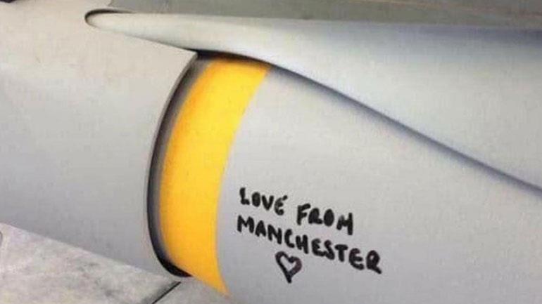 Με τη βρετανική κοινή γνώμη να παραμένει σοκαρισμένη από τα αιματηρά γεγονότα το βράδυ της Δευτέρας στο Μάντσεστερ, τον γύρο του διαδικτύου κάνει μια φωτογραφία που δείχνει μία βόμβα της RAF με τη φράση: «Με αγάπη από το Μάντσεστερ».
