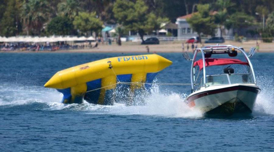 Κάτω από συνθήκες που διερευνώνται , ζεύγος τουριστών από την Αγγλία που πετούσε με αλεξίπτωτο θαλάσσης το οποίο τραβούσε ενοικιαζόμενο σκάφος τραυματίστηκε όταν πάσσαλος του σκάφους απεκόπηκε.