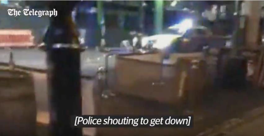 Ριπές πυροβολισμών των αστυνομικών κατά των υπόπτων, οι οποίοι αφού έριξαν το βαν τους πάνω σε ανυποψίαστο πλήθος στην Γέφυρα του Λονδίνου, κατέβηκαν και πεζοί μαχαίρωναν όποιον έβρισκαν στο δρόμο τους στην περιοχή Μπόρο Μάρκετ.