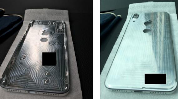 Για την ακρίβεια βλέπουμε δυο εικόνες που υποτίθεται δείχνουν την πλάτη του iPhone 8, εκτός από την εγκοπή για την διπλή κάμερα σε κάθετη διάταξη και το δαγκωμένο μήλο, υπάρχει άλλη μια στρογγυλή εγκοπή για τον αισθητήρα δαχτυλικών αποτυπωμάτων.