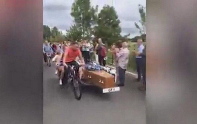 Μια διαφορετική κηδεία τελέστηκε πριν λίγες μέρες στη Βρετανία, καθώς η σύζυγος ενός 49χρονου, που πέθανε από καρκίνο στο πάγκρεας, αποφάσισε να κανονίσει την όλη διαδικασία βάσει όσων φόβιζαν και άρεσαν σε αυτόν. Έτσι, λοιπόν, το φέρετρο είχε παράθυρο ενώ η μεταφορά του δεν έγινε με νεκροφόρα αλλά με ποδήλατα.