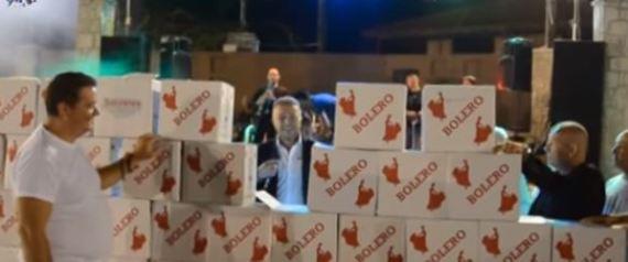 Πιάτα μπορεί να μην έσπασαν αλλά, όπως αναφέρει το nafpaktianews.gr, ο τραγουδιστής Γιώργος Βελισσάρης που εμφανίστηκε στο πανηγύρι, ζήτησε να χτιστεί ένα τείχος από κούτες με σαμπάνιες για να εμφανιστεί από πίσω του και να δώσει το σύνθημα στο προσωπικό να τις ανοίξουν πάνω στη σκηνή.