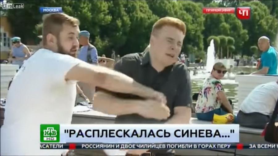 Γροθιά δέχτηκε δημοσιογράφος που εργάζεται σε ρωσικό τηλεοπτικό δίκτυο, ενώ βρισκόταν σε απευθείας σύνδεση παρουσιάζοντας το ρεπορτάζ του, σε ένα πάρκο της Μόσχας, για τις παραδοσιακές εκδηλώσεις με αφορμή την ημέρα των αλεξιπτωτιστών, που γιορτάζεται σήμερα στην χώρα.