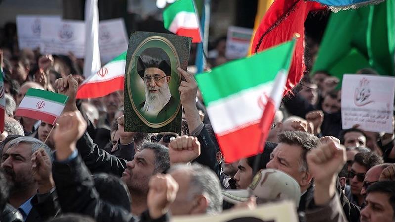 «Είμαστε όλοι μαζί πίσω από τον ηγέτη», τον αγιατολάχ Αλί Χαμενεΐ, φώναζαν οι διαδηλωτές, σύμφωνα με τα πλάνα που μετέδωσε το κρατικό τηλεοπτικό δίκτυο.