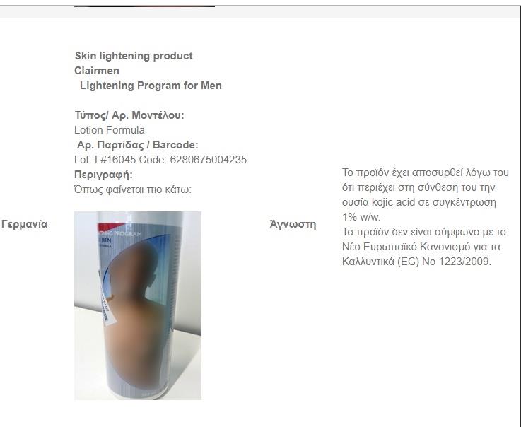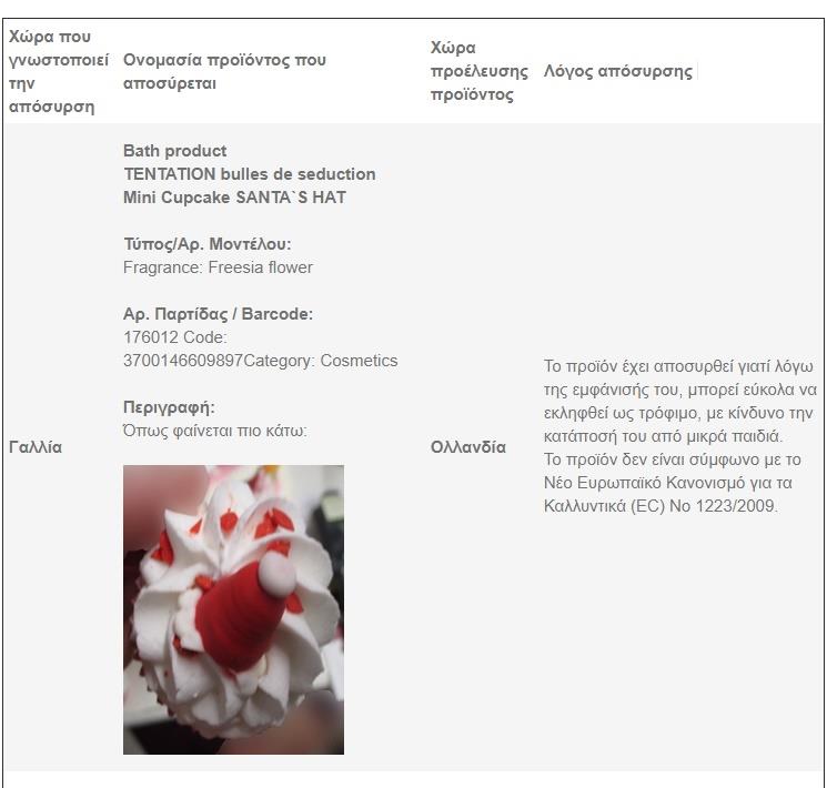 Σύμφωνα με ανακοίνωση του ΓΤΠ, το Δίκτυο Ταχείας Ανταλλαγής Πληροφοριών (RAPEX), στην τελευταία γνωστοποίησή του, ενημερώνει τα κράτη μέλη, ότι στην Ευρώπη έχουν εντοπισθεί και αποσυρθεί τα πιο κάτω καλλυντικά προϊόντα: