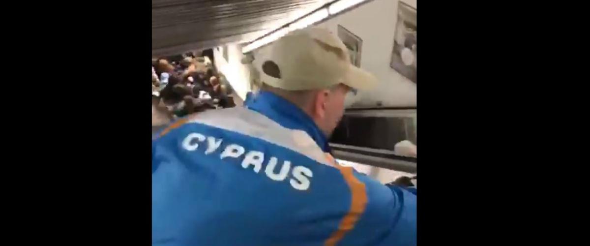 Στο βίντεο που κυκλοφορεί παρουσιάζεται ένας κύριος με φόρμες της Κύπρου να σώζει ένα από τους ανθρώπους που ήταν στην πλευρά των κυλιόμενων σκάλων που πήγαινε με μεγάλη ταχύτητα.