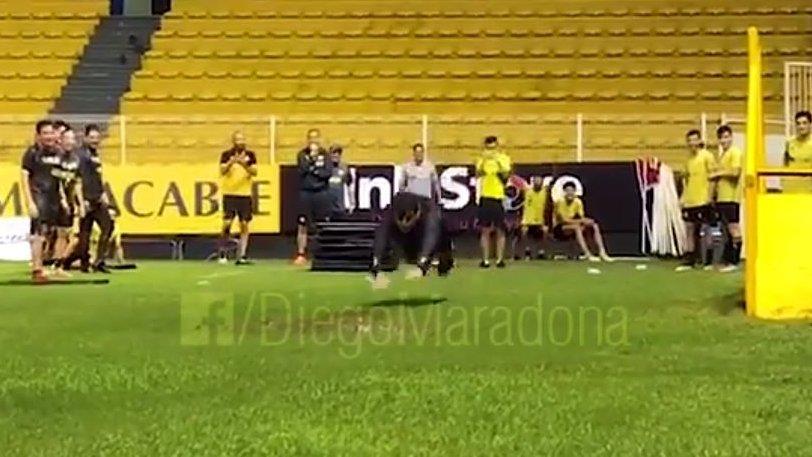 Ο Ντιέγο Μαραντόνα στην προπόνηση της Ντοράδος μιμήθηκε τον πανηγυρισμό του ως προπονητής της Αργεντινής το 2009 βουτώντας στα λασπόνερα!