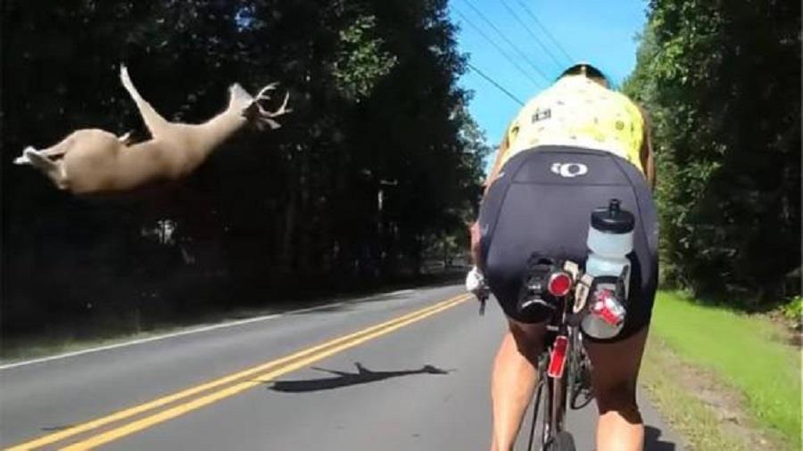 ΒΙΝΤΕΟ: Ιπτάμενο ελάφι περνά πάνω από ποδηλάτες