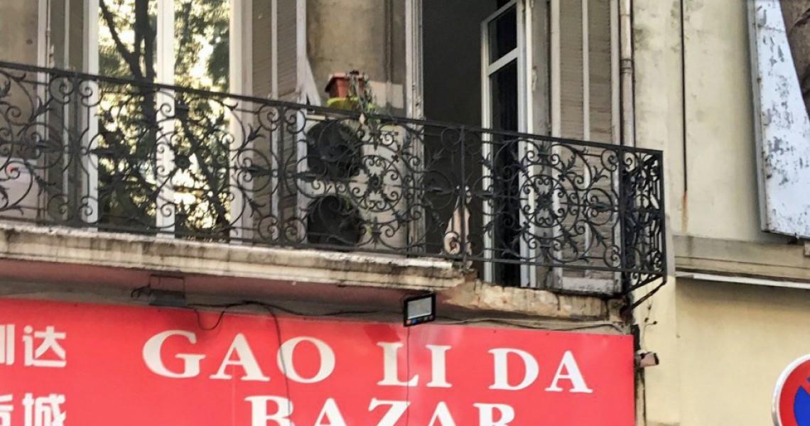 Μια 24χρονη γυναίκα τραυματίσθηκε επίσης ελαφρά καθώς μια πέτρα από το μπαλκόνι την χτύπησε στο πόδι.