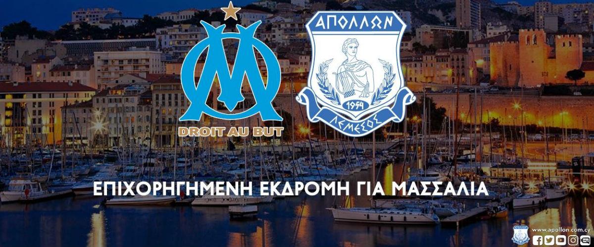 «H Εταιρεία Απόλλων Ποδόσφαιρο (Δημόσια) Λτδ ανακοινώνει τις τιμές των πακέτων για επιχορηγημένη εκδρομή για τους φιλάθλους του Απόλλωνα στη Μασσαλία και τον αγώνα με τη Μαρσέιγ, που θα πραγματοποιηθεί την Πέμπτη 13 Δεκεμβρίου 2018, για την 6η αγωνιστική του 8ου Ομίλου του UEFA Europa League.
