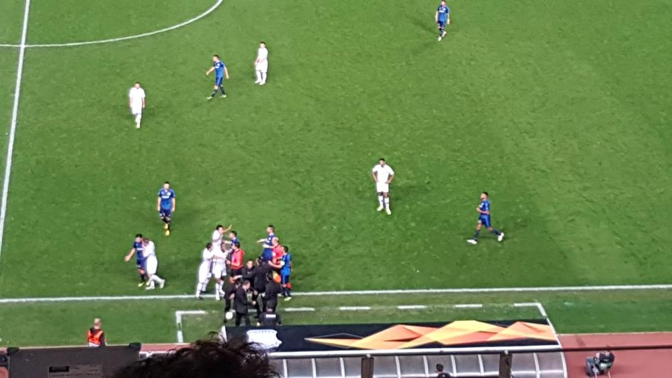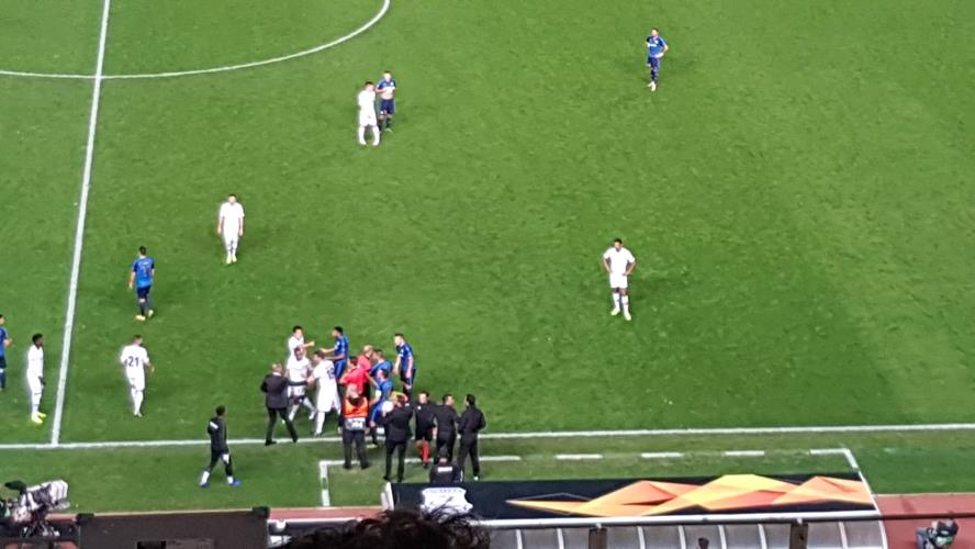 Ο Κύπριος τεχνικός αποβλήθηκε από το διαιτητή μετά από μία αντιπαράθεση με τον Στεντέρα, που προκάλεσε τη σύρραξη με τους παίκτες των φιλοξενουμένων να τα βάζουν με τον τεχνικό των κυανολεύκων.