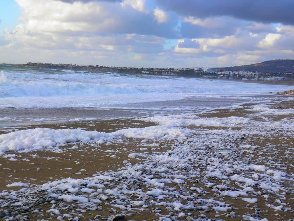 Πρόκειται για το φαινόμενο του Καπουτσίνο (cappuccino coast), όπου αφροί παρουσιάζονται να αναδύουν από τη θάλασσα, κάνοντας την να μοιάζει με έναν τεράστιο καφέ καπουτσίνο.