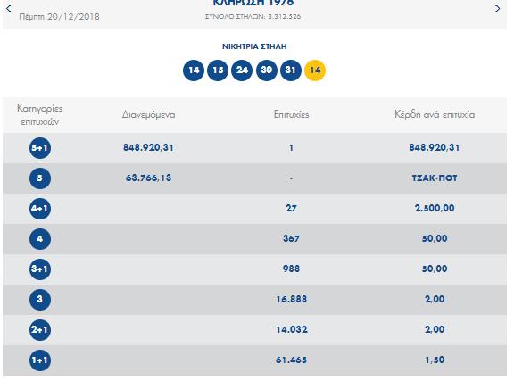 Οι τυχεροί αριθμοί είναι οι: 14, 15, 24, 30, 31