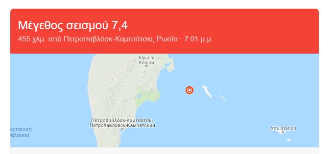 Το επίκεντρο του σεισμού εντοπίστηκε σε απόσταση 88 χιλιομέτρων δυτικά-νοτιοδυτικά του Νικόλσκογιε, στην Καμτσάτκα.