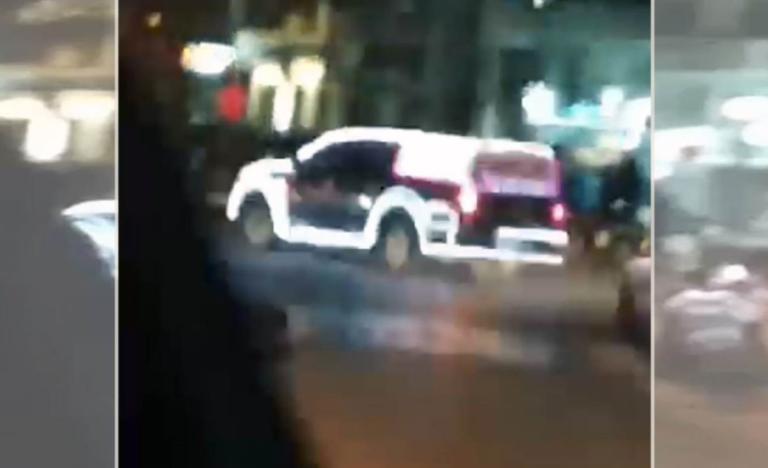 Αμέτρητα λαμπόνια στην καρότσα του οχήματος, αλλά και περιμετρικά, έκαναν τη νύχτα μέρα, ενώ πληροφορίες αναφέρουν ότι ο οδηγός ήταν ντυμένος Άι-Βασίλης.