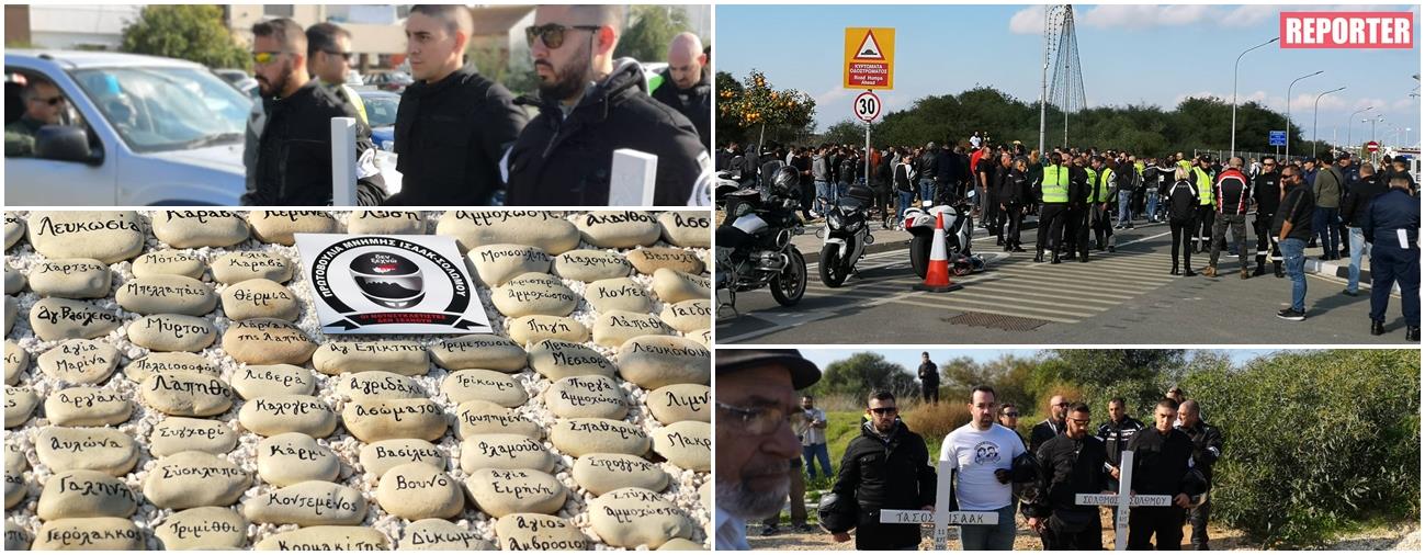 Μοτοσικλετιστές από κάθε γωνιά της Κύπρου, έφτασαν στο οδόφραγμα όπου μετέφεραν πέτρες πάνω στις οποίες αναγράφονται όλα τα κατεχόμενα χωριά της Κύπρου, ενώ τοποθέτησαν και δύο σταυρούς με τα ονόματα των ηρώων Τάσου Ισαάκ και Σολωμού Σολωμού, που δολοφονήθηκαν από μέλη των Γκρίζων Λύκων και τον Κενάν Ακίν αντίστοιχα, τον Αύγουστο του 1996.