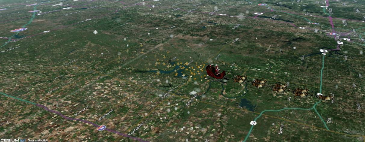 Το έλκηθρό του είναι πιο γρήγορο και από F-15 και μέσα στις επόμενες πέντε ώρες ο Άγιος πρόλαβε να μοιράσει περισσότερα από 1,5 δισεκατομμύριο δώρα, στην Ωκεανία και την Ασία.