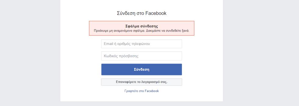 Πρόβλημα με το facebook παρουσιάζεται την τελευταία ώρα με αρκετούς χρήστες να μην μπορούν να συνδεθούν με το λογαριασμό τους.
