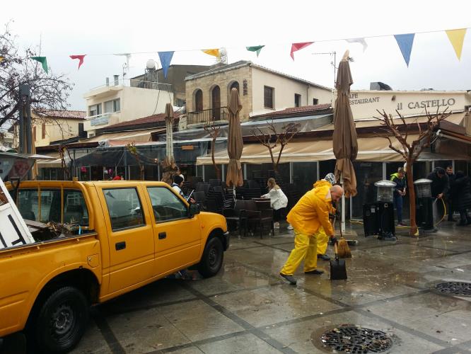 Πυροσβεστική Υπηρεσία, Αστυνομία και συνεργεία του Συμβουλίου Αποχετεύσεων Πάφου, μετέβησαν σε αρκετές περιπτώσεις για άντληση νερών  από πλημμυρισμένα υπόγεια και δρόμους και για το καθάρισμα σχαρών οχετών και ομβρίων υδάτων.