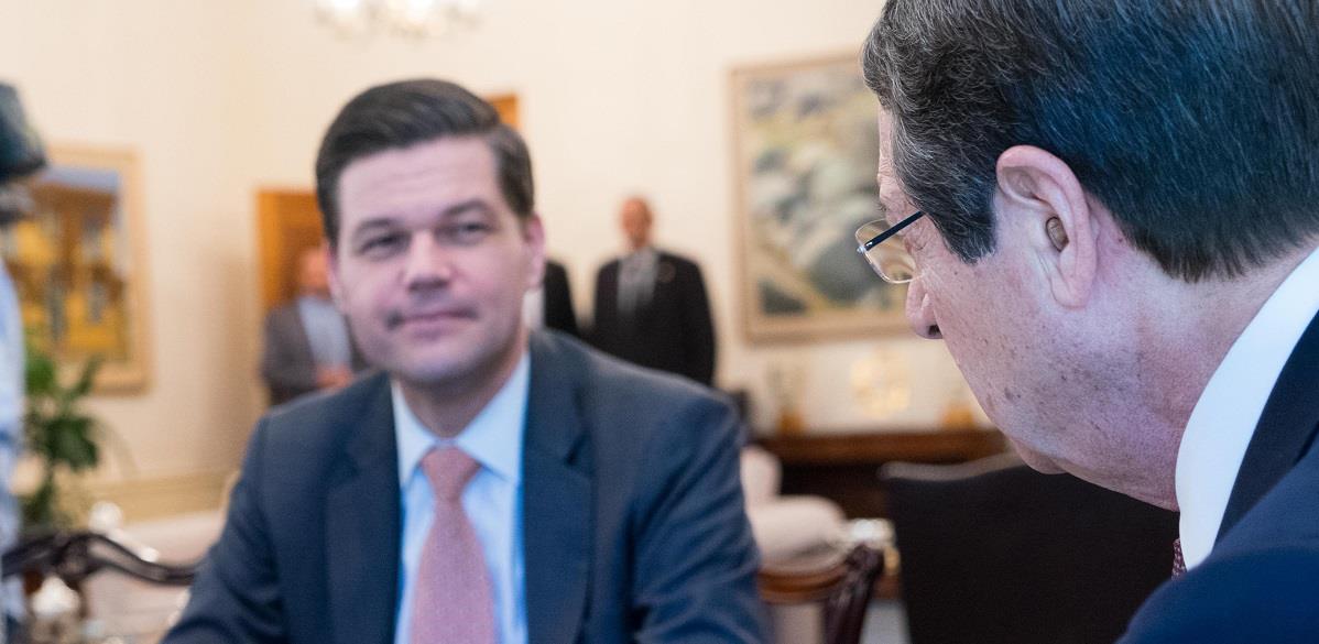 Σύμφωνα με πληροφορίες που επικαλείται το Κυπριακό Πρακτορείο Ειδήσεων(ΚΥΠΕ), κατά τη σημερινή συνάντηση στο Προεδρικό έγινε πλήρης συζήτηση για το Κυπριακό, με τον Πρόεδρο Αναστασιάδη να εξηγεί στον Αμερικανό αξιωματούχο τους λόγους που οδήγησαν σε αδιέξοδο τις διαπραγματεύσεις στο Κραν Μοντάνα.