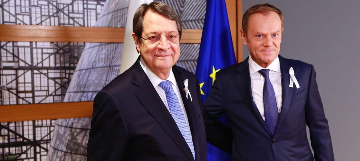 Σε εποικοδομητικό κλίμα πραγματοποιήθηκε στις Βρυξέλλες, η κατ’ ιδίαν συνάντηση του Προέδρου της Δημοκρατίας Νίκου Αναστασιάδη με τον Πρόεδρο του Ευρωπαϊκού Συμβουλίου Ντόναλντ Τουσκ.