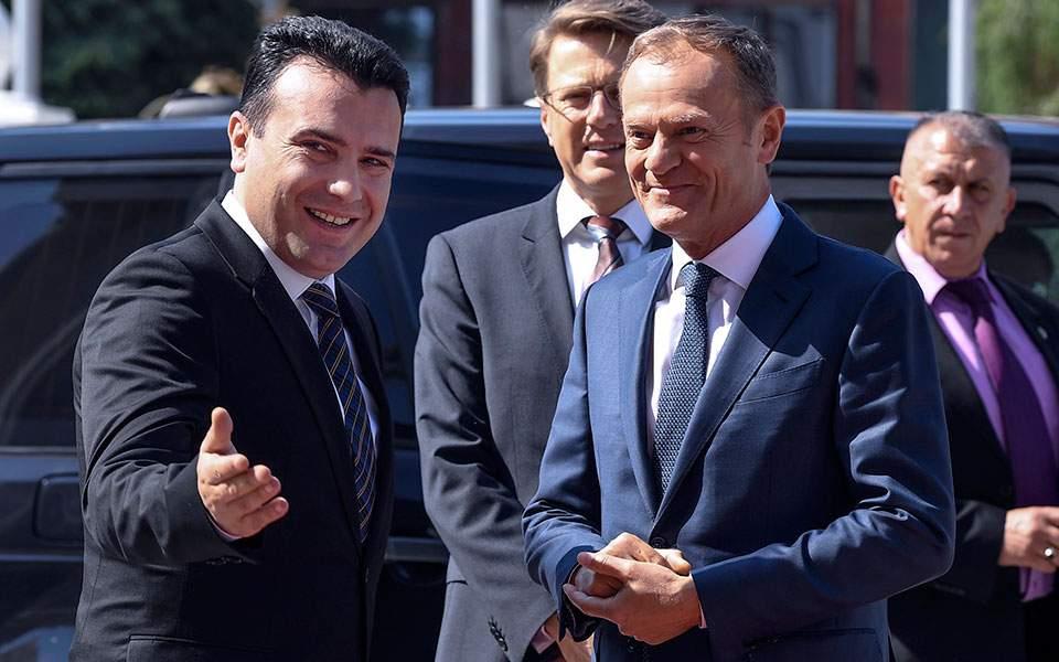 Ο Τουσκ βρίσκεται στα Σκόπια για μια περιφερειακή συνάντηση αρχηγών κρατών στην οποία συμμετέχουν οι πρόεδροι της Κροατίας και της Σλοβενίας, των μόνων πρώην γιουγκοσλαβικών δημοκρατιών που έχουν ενταχθεί μέχρι στιγμής στην ΕΕ.