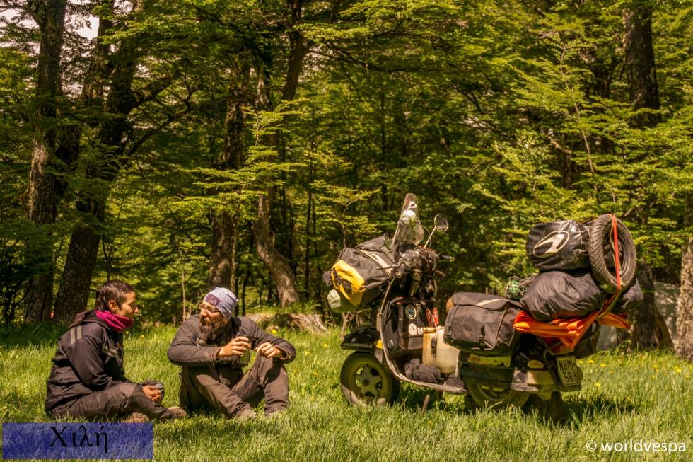 Στέργιος: Τα χρήματα για το ταξίδι ήταν ό,τι κατάφερα να μαζέψω από δουλειές, υποτροφίες που η σχολή μου χρώσταγε κι από διάφορα αντικείμενα που πούλησα (την άλλη μου μοτοσυκλέτα, το κινητό μου, εξοπλισμό μηχανής κτλ). Σιγά-σιγά, όταν ξεκίνησα να μοιράζομαι το ταξίδι στο worldvespa.net, το διαδικτυακό μας σπίτι, πολλοί φίλοι θέλησαν να το στηρίξουν με δωρεές. Το πλάνο ήταν (και είναι) να περνάμε τη μέρα με όσο λιγότερα χρήματα γίνεται. Ευτυχώς, οι επισκευές που έχει χρειαστεί μέχρι τώρα η Vespa είναι λίγες, απλές και οικονομικές! Οι χορηγοί που έχουμε μας έχουν βοηθήσει σημαντικά με εξοπλισμό που χρειαζόμαστε (ανταλλακτικά, εξοπλισμό κάμπινγκ, κράνος), αλλά δε θέλουμε να στηρίζουμε το ταξίδι μας στην ύπαρξη χορηγών. Προτιμούμε να έχουμε εξασφαλισμένη την αυτονομία μας στον δρόμο κι, αν κάποιος επιθυμεί να μας “βάλει λίγη βενζίνη”, τον ευχαριστούμε από καρδιάς!