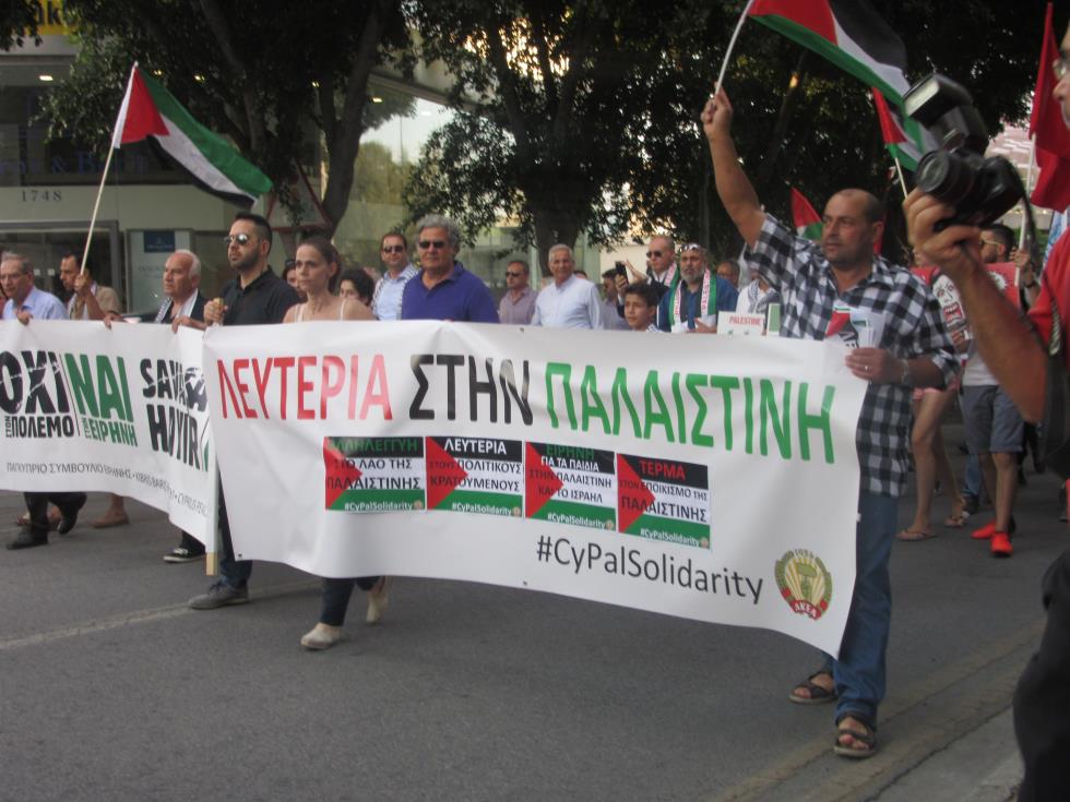 Κύριος ομιλητής στην εκδήλωση, ήταν ο ΓΓ του ΑΚΕΛ Άντρος Κυπριανού. Στους διαδηλωτές απευθύνθηκε και ο Πρεσβευτής της Παλαιστίνης στη Λευκωσία Τζουμπράν Ταουίλ.