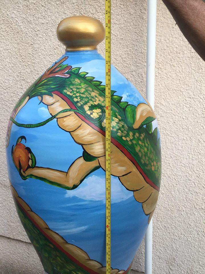 Ο κουμπαράς φτάνει το 1 μέτρο και 10 εκατοστά και έχει επιλέξει να ζωγραφίσει σε αυτό σχέδιο που απεικονίζει την παιδική σειρά «dragon ball».