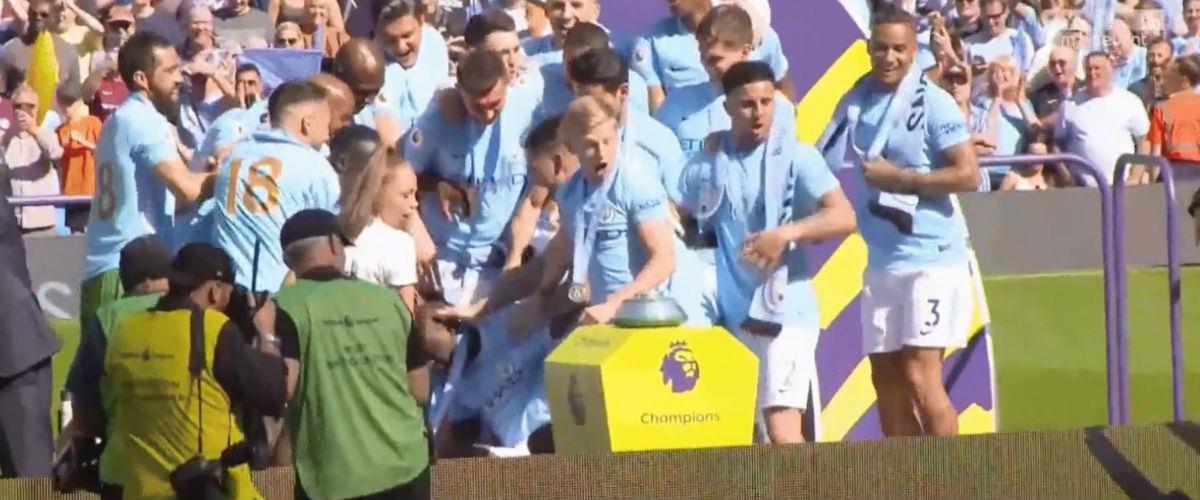H κορυφαία στιγμή στην απονομή της Μάντσεστερ Σίτι ήταν... λίγο πριν την απονομή, όταν οι παίκτες της πάνω στην ειδική εξέδρα έριχναν το γνωστό φατούρο στον Γιαγιά Τουρέ.