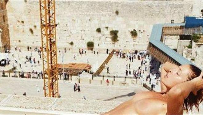 Οι θρησκευτικές αρχές της χώρας κατήγγειλαν αυτήν τη "δυσάρεστη και σοβαρή" φωτογράφιση. Στη φωτογραφία η Μαριζά Παπέν, 26 ετών, εικονίζεται να μισοξαπλώνει σε μια άσπρη πλαστική καρέκλα, στο μπαλκόνι ενός κτιρίου με φόντο το Τείχος των Δακρύων. Σύμφωνα με τη βελγική εφημερίδα HLN, η συγκεκριμένη φωτογραφία παρουσιάζεται αυτήν την περίοδο σε μια έκθεση στο Βέλγιο.