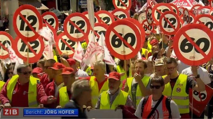 Περίπου 80.000 άνθρωποι διαδήλωσαν στους δρόμους της Βιένης το Σάββατο εναντίον των σχεδίων της κυβέρνησης του Σεμπάστιαν Κουρτς να παραταθεί η εργάσιμη ημέρα έως και στις 12 ώρες. Η μεταρρύθμιση στα εργασιακά αναδεικνύεται σε σοβαρό πονοκέφαλο για τον Αυστριακό καγκελάριο, που επιχειρεί να κερδίσει πόντους σε ένα άλλο μέτωπο: αυτό του μεταναστευτικού- καθώς η χώρα του αναλαμβάνει σήμερα την προεδρία της Ευρωπαϊκής Ένωσης.