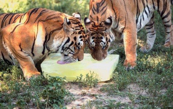 Στο πλαίσιο αυτής της αλληλεγγύης, οι υπεύθυνοι του ζωολογικού κήπου του Παρισιού αποφάσισαν να δώσουν στα φιλοξενούμενα ζωάκια την τροφή τους σε μορφή πάγου, ώστε να παίξουν, αλλά κυρίως να δροσιστούν! Στις φωτογραφίες που κάνουν το γύρο του διαδικτύου τις τελευταίες μέρες, βλέπουμε τα χαριτωμένα ζώα να απολαμβάνουν το δίχως άλλο το παγωμένο τους γεύμα και να δείχνουν πραγματικά χαρούμενα.