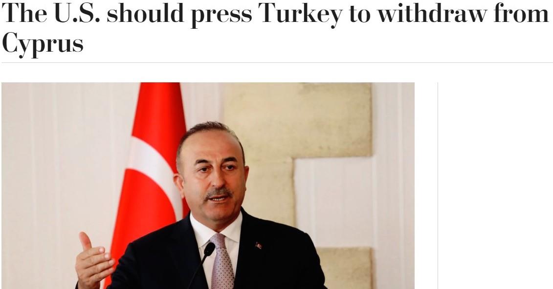 Με τίτλο «Οι ΉΠΑ να πιέσουν την Τουρκία να αποσυρθεί από την Κύπρο» προβάλλεται άρθρο του Έλληνα δικηγόρού James Marketou στην Washington Post.