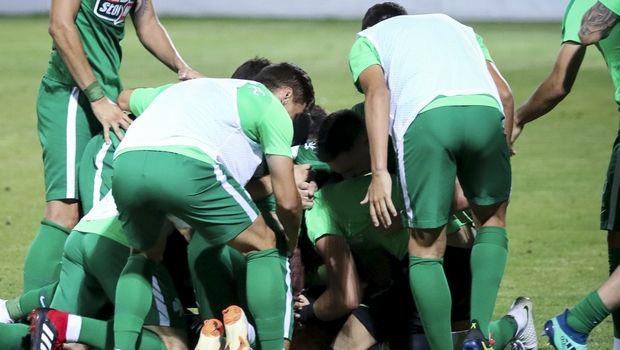 Μετά την επίτευξη του γκολ που χάρισε το τρίποντο στον Παναθηναϊκό (1-0), ο Γιώργος Δώνης αγκάλιασε και φίλησε τον "χρυσό" σκόρερ" της ομάδας του: