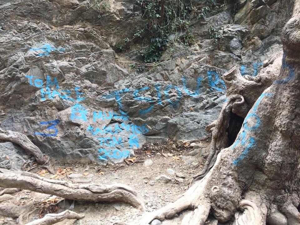 Με ανάρτηση του στα μέσα κοινωνικής δικτύωσης, ο Μιχάλης Ππαλής, αναφέρεται στο εν λόγω περιστατικό, όπου ορισμένοι ανεγκέφαλοι έκαναν γκράφιτι σε δεντρά και βράχους.