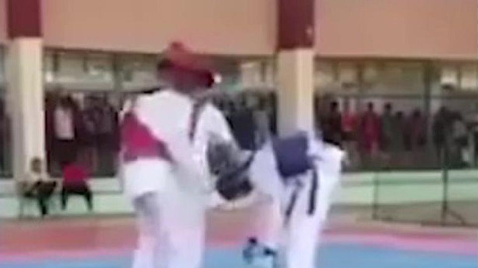 Στο βίντεο που κατέγραψε θεατής του αγώνα φαίνεται ο νεαρός αθλητής να ανταλλάσσει χτυπήματα με τον αντίπαλό του όταν κάποια στιγμή και ενώ υποκλίνεται μπροστά στο διαιτητή, καταρρέει.