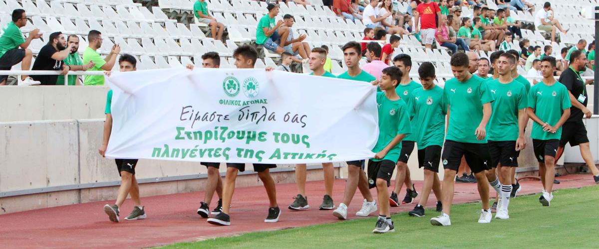 Παράλληλα, όπως έγινε γνωστό, μέρος των εσόδων του φιλικού θα διατεθούν στους πληγέντες, ενώ κυκλοφορούν και λαχνοί στήριξης των 2 ευρώ. Το δικό του μήνυμα έστειλε και το πέταλο των οργανωμένων φίλων του Παναθηναϊκού.